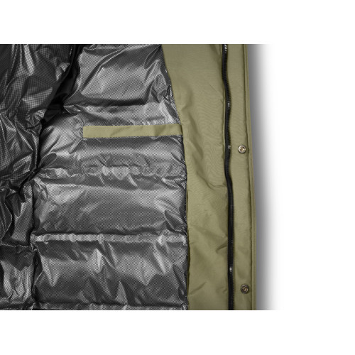 Spodní lem bundy lze stáhnout gumičkou z obou stran, což zvyšuje tepelnou izolaci, chrání záda a zejména kříže před větrem. Po stranách se nacházejí prostorné kapsy se zipem, které díky speciálnímu šití poskytují dostatek místa k uschování například termosky s teplým čajem. Ve vnitřní části se nachází praktická kapsa vhodná na doklady nebo jiné cennosti.