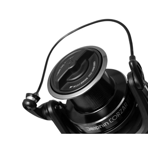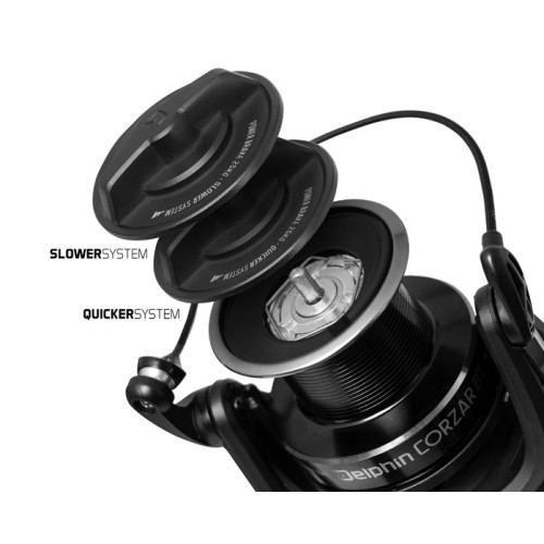 CORZAR patří do rodiny velkokapacitních kaprařských navijáků z dílny firmy Delphin, který vyniká svým, do detailů propracovaným designem. Jeho základ tvoří masivní noha přecházející do těla vyhotoveného z velmi pevného a odolného plastu. Uvnitř navijáku se ukrývá šnekový převod, který v kombinaci s kuličkovými ložisky (6 + 1) zajišťuje bezproblémový plynulý chod a dlouhou životnost. CORZAR je osazen takzvanou "power" brzdou, která disponuje brzdnou silou až úctyhodných 25 kg, a kterou navíc dostáváte k navijáku ve dvou provedeních. Brzda s označením "Quicker system" umožňuje ji naplno utáhnout jedním pootočením, zatímco při "Slower system" je brždění unikající ryby podstatně jemnější a pomalejší. Spolu s anti-reverz systémem tak nabízí CORZAR široké spektrum možností nastavení síly při zdolávání ryby. Devizou navijáku je také nahazovací pojistka, která při odklopeném překlapěči v určité poloze zabraňuje nechtěnému přetočení hlavy a případnému utržení vlasce během nahazování. Kovová cívka pojme dostatečně velké množství vlasce, což z něj dělá opravdu všestranný naviják pro všechny typy vod. V balení navíc dostanete kromě dvou brzd i dva náhradní šrouby na upevnění kliky.