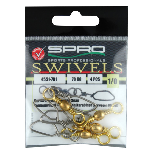 SPRO Obratlík s norskou karabinkou č. 1/0 – 70 kg (4 ks)
