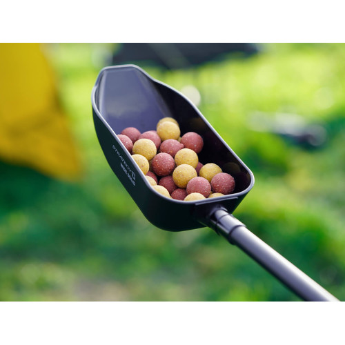 Teleskopická rukojeť umožňuje rychlé prodloužení dosahu při zakrmování na větší vzdálenosti, zatímco v zasunutém stavu je lopatka skvělá pro míchání krmení nebo krmení přímo u břehu. Ergonomická pogumovaná rukojeť zajišťuje jistý úchop i v mokrých podmínkách.